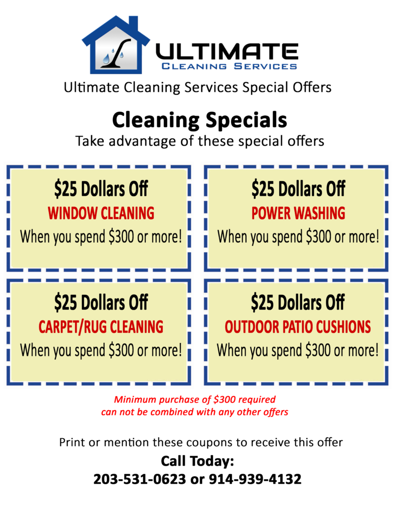 $25.00 off Window Cleaning$25.00 off Power Washing$25.00 off Carpet Cleaning$25.00 off Outdoor Patio Cushion Cleaning